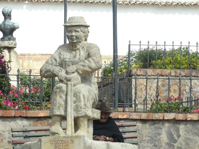 Ils en cousent aussi à la main, comme la statue l'immortalise (le modèle est juste derrière, sur le banc)