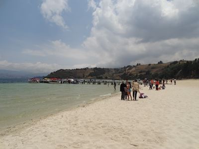 Le plus grand lac de Colombie et sa plage de sable blanc venue de nulle part, à 3100 m. Des jeunes locaux courageux viennent s'y baigner le week-end