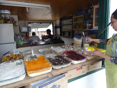 Petit village, tout vide ce samedi après-midi ; seuls quelques chiens, les vendeuses de la spécialité locale(des pâtisseries) et un touriste sont présents