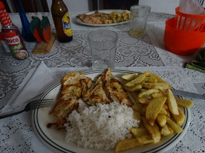 Un excellent poulet-riz-papas francesas, qui rattrape les deux petits sandwichs de midi
