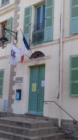 La mairie/école avec toujours les deux drapeaux