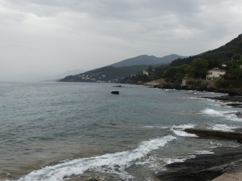 En route sous quelques gouttes vers le cap Corse. Mais la pluie s'arrêtera vite laissant la place à un généreux soleil et jusqu'à 31 °