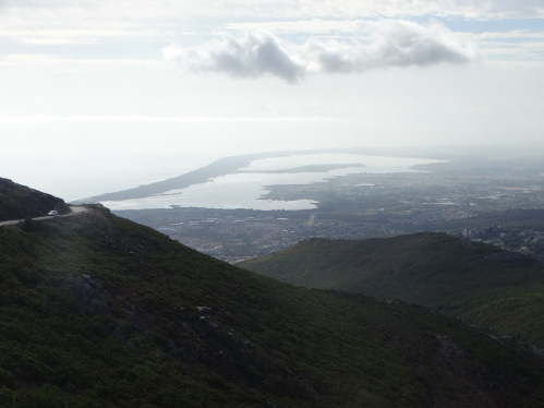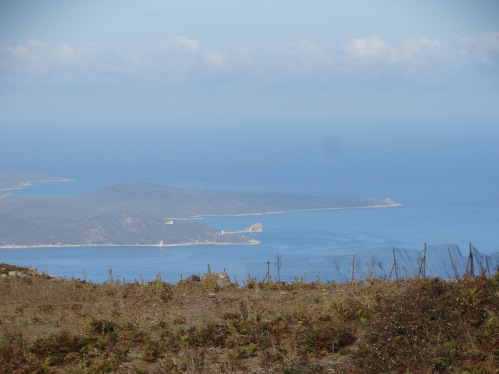 Nous passons par le col de Teghime qui nous permet d'avoir une vue sur la lagune de Bastia (à gauche) et la côte ouest (à droite)
