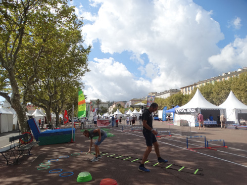 Sur la place San Nicolas, un rassemblement de tentes : les associations sportives présentent leurs sports respectifs avant inscription ; une initiative sympa !