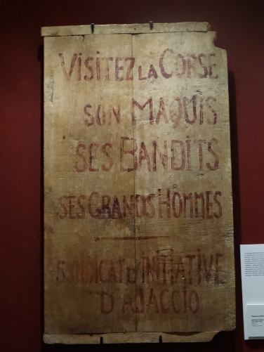 L'affiche de l'expo et à droite, une campagne publicitaire du syndicat d'initiative d'Ajaccio vantant le maquis, les grands hommes .... et les bandits !