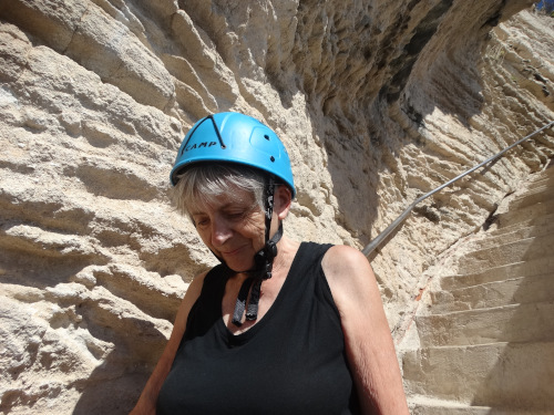 On s'attaque à l'escalier du Roy : 184 marches taillées dans la roche qu'il faudra remonter ....