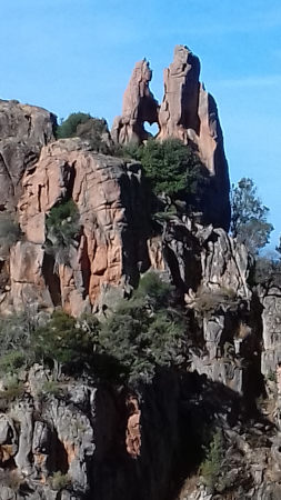 Une fois traversé le village de Piana, la route se faufile entre des parois découpées appelées LES CALANCHES (OU CALANQUES) DE PIANA