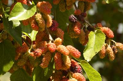 Un énorme mûrier et ses fruits, les mûres