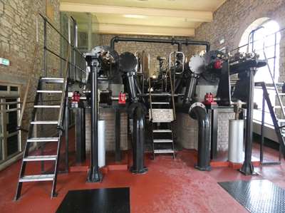 Nous retrouvons la même machine à vapeur que lors de la visite de la mine et sa transformation du mouvement