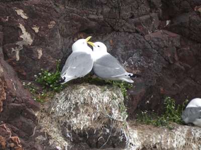 Dans les anfractuosités de l'ancien château, des mouettes ont niché. Les petits encore dans le nid piaillent en attendant la becquée