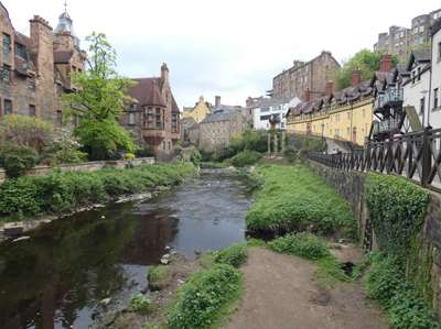 à pied, depuis l'arrêt du bus, nous rejoignons cet ancien village de meuniers, rattaché à Edimbourg au XIX ° siècle
