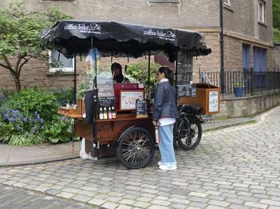 C'est ici qu'on a trouvé le coffee-bike : il vend du café chaud avec son vélo