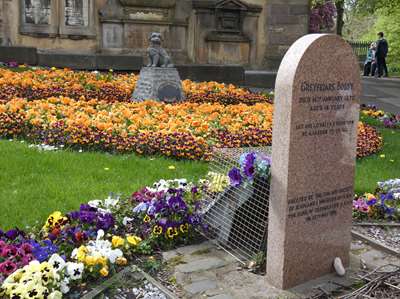 Pas banal : une stèle à la gloire du petit chien qu'on aperçoit derrière : pendant 14 ans, Bobby a monté la garde devant la tombe de son maître !!!