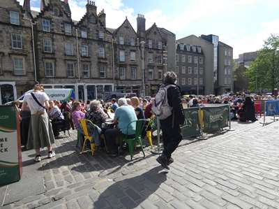 Notre coup de coeur à Edimbourg : place piétonne, beau temps chaud, les terrasses des très nombreux bars sont pleines !!!