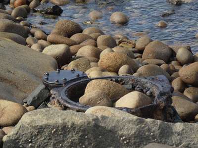Au milieu des rochers affleurre un puits : il conduisait à une mine de fer dont les galeries étaient sous-marines