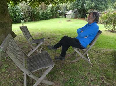 Voici une image que l'on na pas vue depuis longtemps (il est juste derrière la haie) : une table, de l'ombre ...