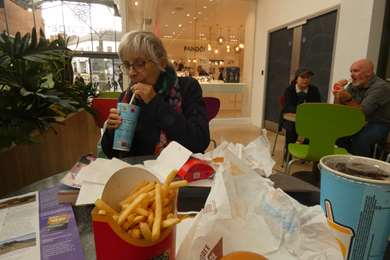 Un petit moment de détente (affiche Guiness qui dit : bon pour la force, un pub et au Mac Do