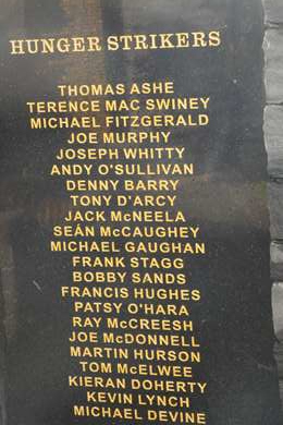 Plusieurs stèles, monuments, commémorant la mort des soldats de l'IRA, des grévistes de la faim de 1981, ou du Bloody Sunday