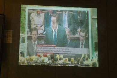 Une vidéo où James Cameron, premier ministre, apprend aux familles de Derry la décision de la justice, innocentant les 14 morts