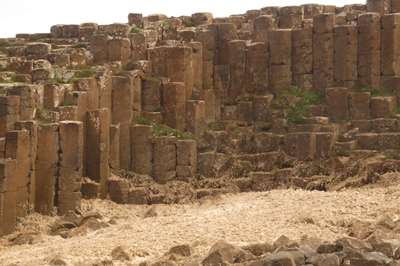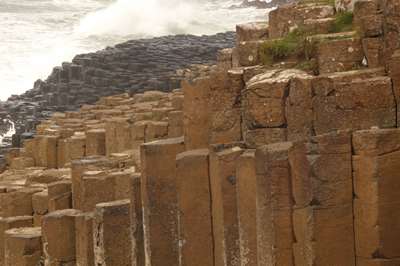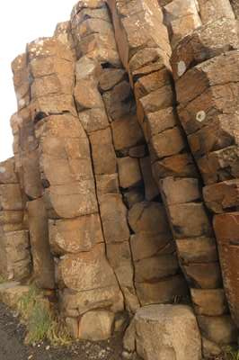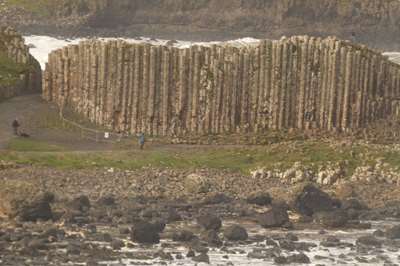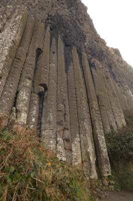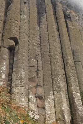 Et voici les premières colonnes : il s'agit d'un phénomène géologique impressionnant : il y a plusieurs dizaines de millions d'années, de la lave basaltique s'est écoulée d'un volcan et s'est refroidie rapidement : c'est ainsi que 40 000 colonnes se sont formées