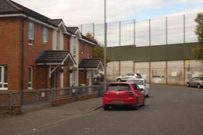 Le mur, qui sépare le quartier catholique et le quarier protestant, toujours fermé la nuit (il paaît que ça rassure)