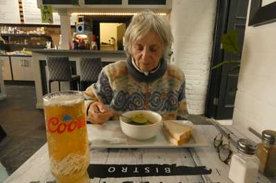 Nous mangeons soupe et sandwichs au même restaurant qu'hier (il est dans le même bâtiment)