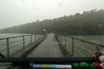 L'étroit pont qui traverse le petit fjord qui nous mène à .....