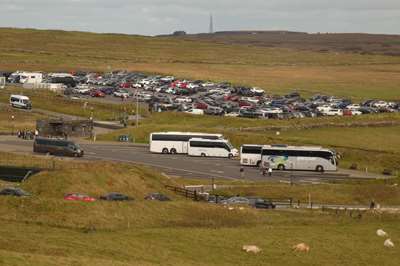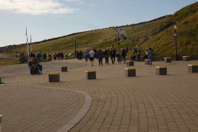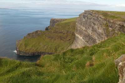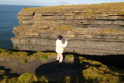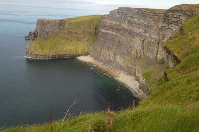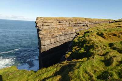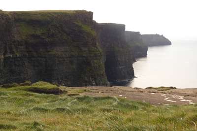 Ce sont de splendides falaises (214 m de haut) , mais nous avons, nous, l'impression d'être sur la muraille de Chine, vu l'affluence. En plus, il y a même l'ambiance : nous sommes accompagnés par un bus de Chinois. C'est d'ailleurs le site le plus visité d'Irlande.