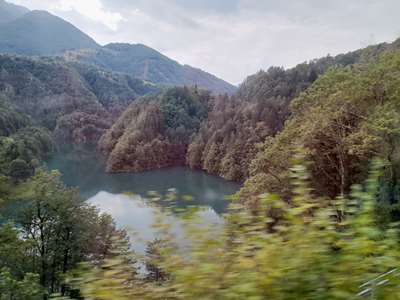 C'est le fameux petit train des Cent Vallées qui avance pendant deux heures tranquillement souvent à flanc de montagne. Il franchit 83 ponts et on n'a pas compté les tunnels