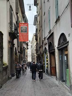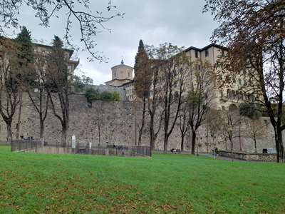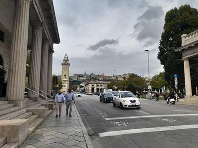 Il pleut un peu ce matin ; nous quittons le lac de Côme, direction Bergame