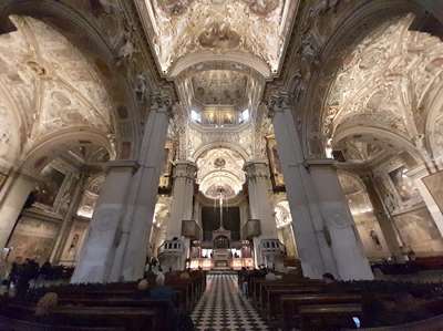 Le clou de la journée : la Basilique Santa Maria ; du grand baroque, des stucs décorés à outrance ; ensemble somptueux
