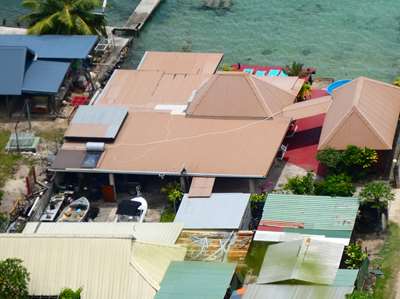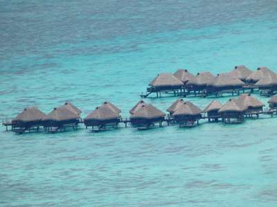 Ces paillottes sont les hôtels "Hilton" et "Intercontinental" (entre 500€ et 600€ la nuit au bungalow)