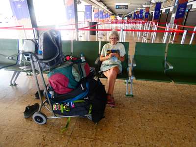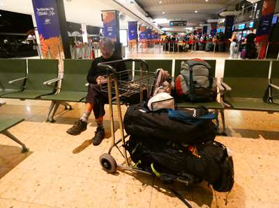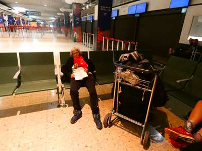 Nous sommes obligés de rendre la voiture à 13 heures ; nous voici donc dans l'aéroport pour une attente qui va durer 14 heures, notre avion étant prévu à 2 h 45 le 6 au matin