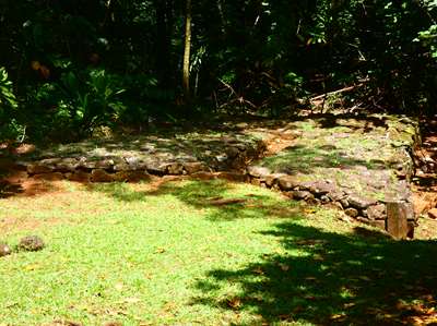 Ce sont des maraes : des lieux de culte, des sanctuaires : on y invoque les dieux, intronise les chefs, prépare la guerre et fait des sacrifices humains. Ici, il y en a 3.