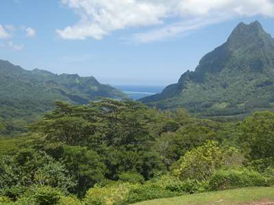 A gauche, la baie d'Opunohu