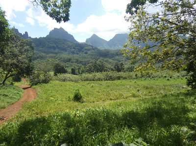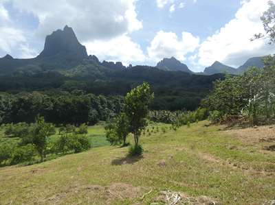 Le plus intéressant est ce verger planté sur la caldeira. La caldeira est l'ancien cratère du volcan qui s'est effondré. Les pics autour sont les versants du cratère.Tahiti et toutes ces îles sont d'anciens volcans