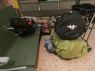 Vigilante, mamie voit immédiatement s'afficher l'écran "booking" commencé mais les comptoirs ne s'ouvrent pas... Et une agent de sécurité annonce :