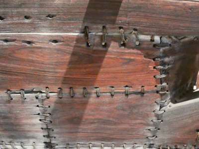 Les éléments de celle-ci sont assemblés avec des ligatures faites à partir de bourres de coco