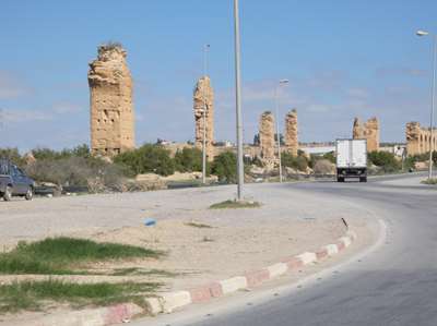 Petite anecdote de voyage, l'anecdote du pain. Nous sommes partis, le sourire aux lèvres, de Nabeul sans acheter notre pain quotidien. Grossière erreur !!!!. Après 4 ou 5 arrêts dans les villages traversés, il faut nous rendre à l'évidence lorsque nous arrivons à destination : nous n'avons pas la moidre baguette. Qu'à cela ne tienne, il nous reste le village voisin : El Fans. Mamie descend 5 ou 6 fois de la voiture (qu'il faut chaque fois garer) : "pas de pain, mais vous en trouverez plus loin". Plus loin, nous y allons, et voici mamie partie je ne sais où .... Quand elle revient, plus d'une demi-heure plus tard, voici son témoignage :"Effectivement, j'ai trouvé une boulangerie, mais plus de pain m'annonce-t-on ! Pourtant, il y a une cinquantaine de baguettes sur le côté qui attendent qui ? Je ne saurai jamais ! L'attente est longue, personne ne parle français dans cette région, et moi, je n'ai encore pas eu le temps d'apprendre l'arabe. Je me place en bout de file, mais erreur, c'est la file des hommes ! Je dois changer de file et attendre que le pain soit cuit...L'attente est longue (et la tante aussi)...Je repars au bout de 20 minutes avec ma baguette toute chaude à lamain. De retour à la voiture, PERSONNE !!!!. Voilà que mon époux s'inquiétait. Qu'ont-ils fait de mamie ?????"