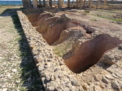 Voici une découverte !!!!! Cette cité romaine devait son dynamisme à son industrie de la pêche et à ses usines de salaison. On découvre 6 bassins profonds de 2 mètres qui servaient à la fabrication de garum, la saumure de poisson épicée. La mixture était réalisée par fermentation des restes d'arêtes et de viscères de poissons, salés et réduits à la chaleur du soleil pendant plusieurs semaines. On imagine l'odeur !!!!