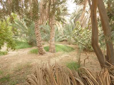 400 000 palmiers qui appartiennent à différentes familles ; les parcelles sont séparées par des palissades