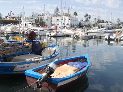 A quelques 20 kilomètres de notre hébergement, nous nous arrêtons à Port El Kantaoui où s'est déroulée l'attaque terroriste de 2015. C'est un port et une station entièrement construits dans les années 1970 accueillant des touristes du monde entier,qui aimaient y venir (hôtels luxueux, casinos ...)